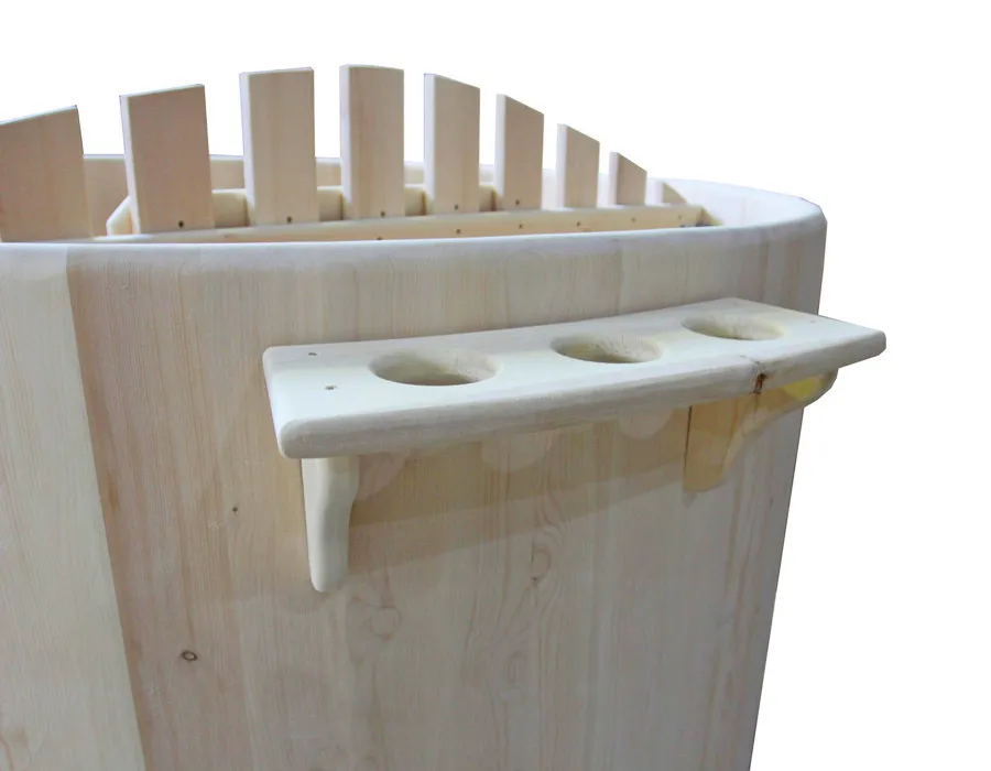 Это уличная баня, которой можно пользоваться круглый год. Купель представляет собой круглую емкость для воды, внутри которой располагаются сиденья из кедра. Нагрев воды происходит за счет встроенной печи, которая находится внутри купели за перегородкой. Рекомендуем приобрести термокрышку и весло для перемешивания воды для ускорения нагрева. Для удобства пользования японская баня фурако оборудована внешней и внутренней лестницей из кедра. В комплектацию этой модели входит совок с длинной ручкой, который позволяет извлекать угли и золу после эксплуатации изделия.