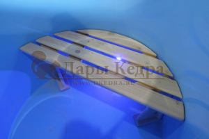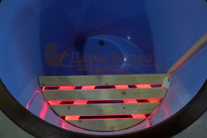 Эффектная подсветка, посредством встроенной, влагозащищённой светодиодной ленты класса IP68. Идеально подходит для круглых купелей. Источник света скрыт от глаз, яркость освещения и цвет можно менять с пульта на расстоянии до 5 метров. Также есть автоматический режим плавной смены цветов, похожий на северное сияние. Хотите удивить близких и друзей? Тогда это ваш вариант!