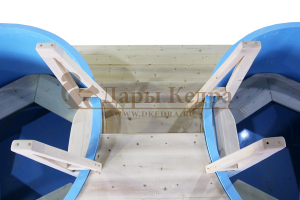 Полка крепится к борту с внутренней части купели. Будет удобна для напитков, посуды, или любых других не очень больших, но нужных вещей.