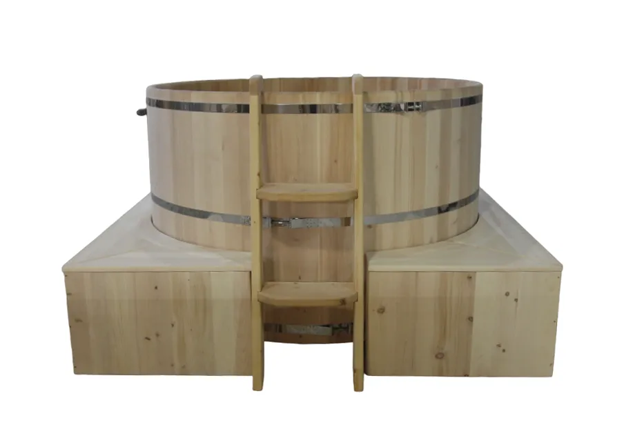 Представляет собой герметичную емкость для воды из кедра, которая предназначена для отдыха и охлаждения тела после процедур парения. Ширина прямоугольной купели равна ширине стандартных дверных проемов (78 см), поэтому занести в помещение ее можно в собранном виде. Благодаря прямоугольной форме купель хорошо впишется в угол помещения. Так же ее можно установить на улице. Прямоугольная купель оснащена лавочками, приставной и внутренней лестницей из кедра. Обручи из нержавеющей стали плотно прилегают к изделию, что позволяет равномерно распределить нагрузку воды и сохранить форму во время эксплуатации. При правильном уходе купель для бани не рассыхается и не подвергается гниению.