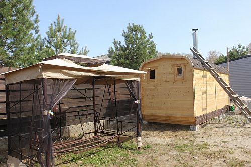 Баня-бочка - отличный вариант для дачи! Всё просто: сходил в огород, потом баньку затопил, помылся и пошел домой попить сладкого ароматного чая. Для здоровья просто супер! То, что нужно после тяжелого трудового дня. Топится банька совсем недолго, около 30-40 минут всего. Рекомендую тем, кто не хочет заморачиваться со строительством бани! Такую модель можно ставить просто на подготовленную ровную поверхность, я заранее оборудовал место. Когда баню привезли, ее просто поставили и всё-никаких заморочек! Советую.
